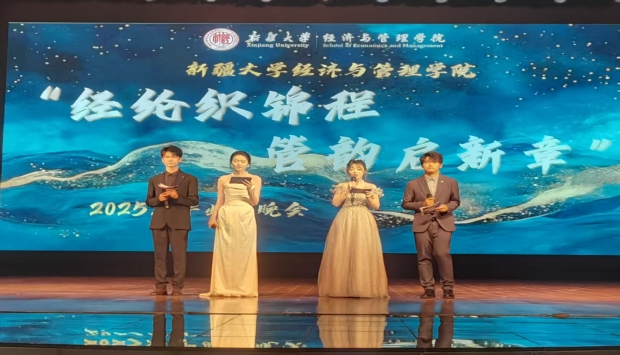 2025年6月4日晚20:00,经济与管理学院在新疆大学红湖校区大学生活动中心隆重举办“经纶织锦程、管韵启新章”毕业晚会。学院党委书记朱新武、院长吕雁琴、副院长马晓东、副院长李迎雪、学术副院长周建力以及辅导员、班主任老师和在校毕业生齐聚一堂,共同度过了一个温馨而难忘的夜晚。