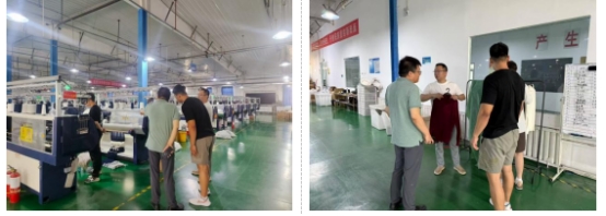 在针织车间,这里的圆机正将纱线编织成针织面料,经过裁剪、缝合、锁边等工序,一件件初具雏形的针织衫逐渐成型。负责人介绍了一件由新疆长绒棉生产出来的成品针织衫,透气性好,很受市场欢迎,团队成员们仔细观察着面料的纹理与缝制工艺。