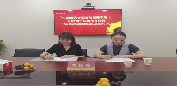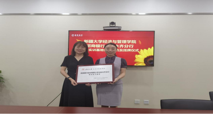 7月24日,新疆大学经济与管理学院与招商银行举行“实习实训基地”签约挂牌仪式。座谈时,学院也询问了解往届学院在招商银行工作的学生情况,招行领导对新疆大学经管学院学生各方面表现交口称赞,希望更多优秀学子来招商银行工作。双方就2024届秋季招聘准备、实习岗位、学生实践能力和素质提升等进行了交流,未来将携手共进,精诚合作,让校企合作成果真正可以反哺教学,也让学生在实践中获得真锤炼,学到真本事,让招商银行变成优秀人才培养和职业技能提升的沃土。