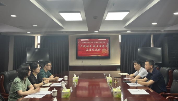 国合公司党委副书记、纪委书记李鹏程向苗健副书记、李迎雪副院长、于斌老师介绍了公司发展历程、企业荣誉、经营类型及业绩、人才需求等。苗健老师介绍了新疆大学经济与管理学院基本情况、学生培养、就业实习等情况,李迎雪副院长介绍了学院科研创新、社会服务、人才建设等取得的成绩。双方就签订校企合作协议进行了充分沟通。
