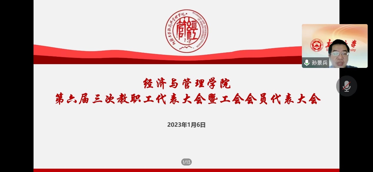 2022年,在大学党委的坚强领导下,经济与管理学院党委以习近平新时代中国特色社会主义思想为指导,学习贯彻落实党的二十大和二十届一中全会精神,紧紧围绕大学党委中心工作,以政治建设为统领,以高质量发展为目标,坚决打赢三大攻坚战,学院在人才培养、学科建设、科研质量、社会服务等方面取得了长足的进步,管理体系和管理能力进一步强化完善。百舸争流千帆竞,借海扬帆奋者先,成绩属于过去,唯有以史为鉴,总结经验,才能开拓创新,再创佳绩。2023年1月6日上午,经济与管理学院召开学院六届三次教职工代表大会暨工会会员代表大会(以下简称“双代会”),学院全体教职员工、2022年退休教师参加了本次“双代会”。