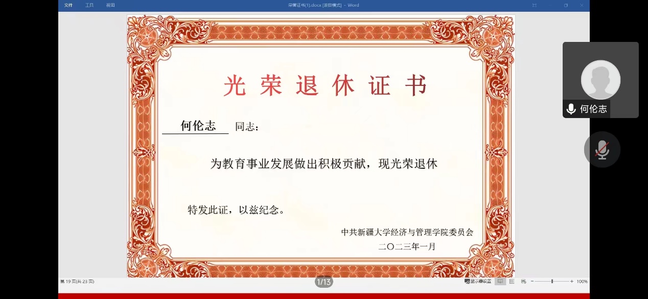 随后,举行2022年退休教师荣退仪式,学院领导对每位退休教师在职期间工作给予了高度评价,代表全体师生感谢其多年来在学院人才培养、学科建设、科研创新以及青年教师指导等方面做出的积极贡献。并向荣退教师颁发光荣退休证书,以表达对退休教师的感激和不舍。5名退休教师也分别表达了对学校、学院的感激与不舍之情,表示将继续发挥余热,助力学院发展建设。