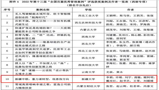 日前,由全国工商管理专业学位研究生教育指导委员会指导、中国管理案例共享中心主办的第十三届“全国百篇优秀管理案例”公布评审结果。经济与管理学院李莉教授带领团队开发的《新疆中联:蓄力谋转型,税惠指方向》案例荣获“全国百优(西部专项)”,这是我校自启动案例建设以来,首次荣获“全国百优(西部专项)”的殊荣。