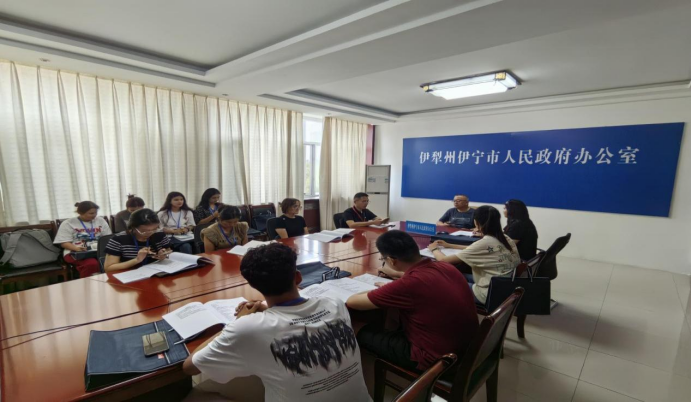笙歌嘹亮芳草绿,知尽关山第几重。乘着暑期的热浪,点燃青春的花火,汇聚人民的意志,不负国家的厚望。新疆大学经济与管理学院暑期社会实践调研团伊犁分队于2023年8月2日18:00抵达伊宁市,在火车站与前来接站的伊宁市统计局干部进行会合后,当即前往伊犁州发展研究中心对接“2023年中国民生关切点入户调查”工作事宜。本次调研工作得到了伊犁州发展研究中心、伊宁市统计局高度重视,发展研究中心肖鹏主任、统计局孟庆福书记在对接座谈会上对我院伊犁分队的到来表示热烈的欢迎。带队老师帕提曼·亚克甫和刘鑫分别就2023年中国民生关切点入户调查项目的背景意义和调查准备过程中的难点与诉求进行了阐述,对调查期间的注意事项进行再说明、再强调、再部署,确保本次入户调查安全真实高效。