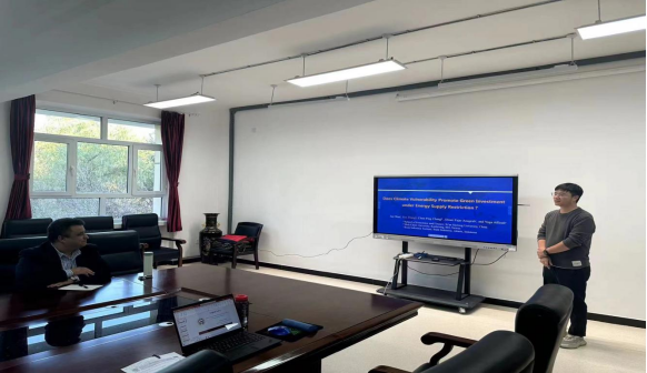 张森老师的报告以“does climate vulnerability promote green investment under energy supply restriction? ”为题,从能源供应限制的视角出发,实证考察了气候脆弱性对国家层面绿色投资的影响效果,探讨了适应性准备、经济发展水平、技术创新水平和能源供应限制的调节作用,并根据实证发现提出如何平衡气候保护和绿色投资之间关系的政策建议。