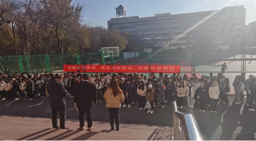 16:40分,以哨声为统一信号,同学们有序下楼。一楼左、右侧门由学院指定学生干部负责推开并组织学生由此逃生;引导逃生的学生干部提前就位于楼梯口,负责按照既定线路疏散。撤离时提示学生始终用毛巾或袖子捂住口鼻,靠右侧依次下楼,让出左侧救援人员上楼通道。16:46分,疏散后的师生快速到达指定集合点,按照班级站队,由班长整队、清点人数并向现场负责人报告应到和实到人数。逃生环节结束后,我院米尔夏老师讲解灭火器使用方式,并让学生操作使用灭火器。我院副院长外力·依米提老师进行了总结讲话:“同学们应始终鸣响‘119’的警钟,提高防火意识和技能,掌握危机情况下逃生的本领,并积极向身边的同学宣传,让更多的人关注火灾隐患,把各类危害校园安全的行为打消在萌芽状态,为持续推进平安校园、和谐校园贡献出经管学子的力量”。