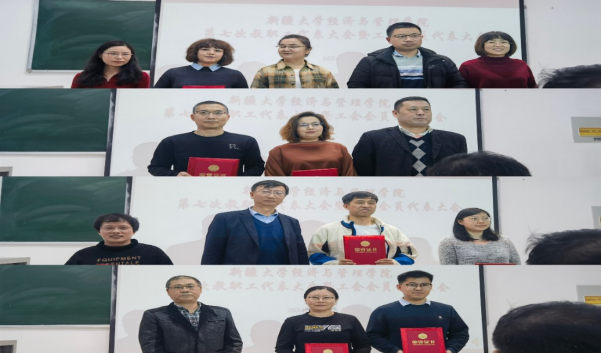 本次大会选举产生7名教师担任第七届工会委员,新一届委员依次上台亮相,并进行了表态发言。