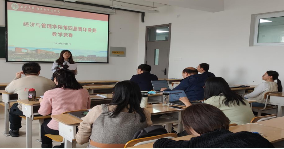 根据大学党委教师工作部《关于举办新疆大学第四届青年教师教学竞赛的通知》要求,为进一步提升青年教师教育教学能力,我院在前期各系组织的教学竞赛选拔赛基础上,于2024年3月15日上午在11号教学楼410室举办了经济与管理学院第四届青年教师教学竞赛。本次竞赛邀请了孙景兵院长、马晓东副院长、郭庆然教授、王治海副教授、刘晶主任等5位专家担任竞赛评委,部分教师观摩了此次竞赛。