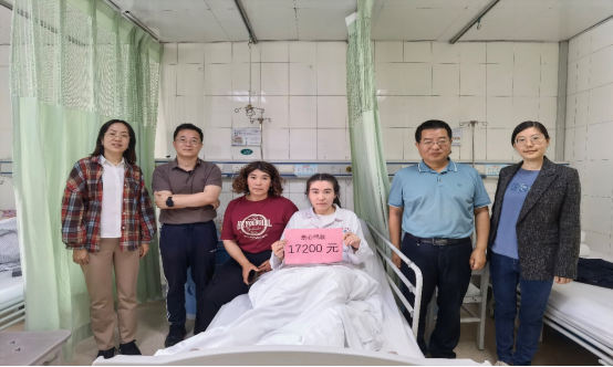 通过近3天的募捐,截止2024年6月3日,学院师生通过“水滴筹”已筹集4.8527万元。学院孙景兵院长通过校友群为该生筹集1.72万元,合计筹款6.5727万元。为让该生尽早手术治疗和减轻心理负担,院党委书记马伟老师、院长孙景兵老师、党委副书记苗健老师及班主任和辅导员于6月3日下午奔赴医院,将这笔爱心款送至迪力娜拉同学的手中。