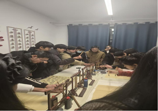 最后一站,大家来到了书法馆。书法馆内弥漫着淡淡的墨香,古色古香的装饰风格让人仿佛穿越回了古代文人墨客的书房。墙上挂满了师生们的书法作品,楷书的端庄秀丽、行书的流畅自然、草书的豪放不羁,无不展现出书法艺术的独特魅力。牛美琪老师给我们讲解了书法的历史渊源、文化内涵以及练习书法对身心修养的积极影响。在老师的鼓励下,同学们拿起毛笔,尝试书写自己的作品,感受毛笔与宣纸之间的细腻触感,体验传统文化带来的宁静与美好。书法馆不仅是传承和弘扬中华传统文化的重要平台,更是培养同学们审美情趣和专注力的理想场所。