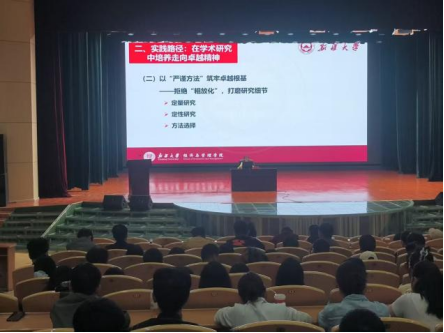 本次入学教育设置多元核心模块,旨在为新生提供全方位指导。“院长第一课”作为关键环节,学院党委副书记、院长吕雁琴围绕学科发展前沿、研究生培养体系及学术创新要求,引导新生树立正确学术观念。在专业导航中,各学科骨干教师详细介绍本专业培养方案、课程设置、科研方向及就业前景,助力新生了解专业内涵。此外,高年级研究生分享论文写作、课题参与、学术竞赛等经验,帮助新生高效成长;学生社区老师讲解宿舍管理规定、社区服务资源及校园安全注意事项,引导营造和谐宿舍氛围;图书馆老师介绍馆藏资源、借阅流程及电子数据库使用方法,提升新生学术资源获取能力。